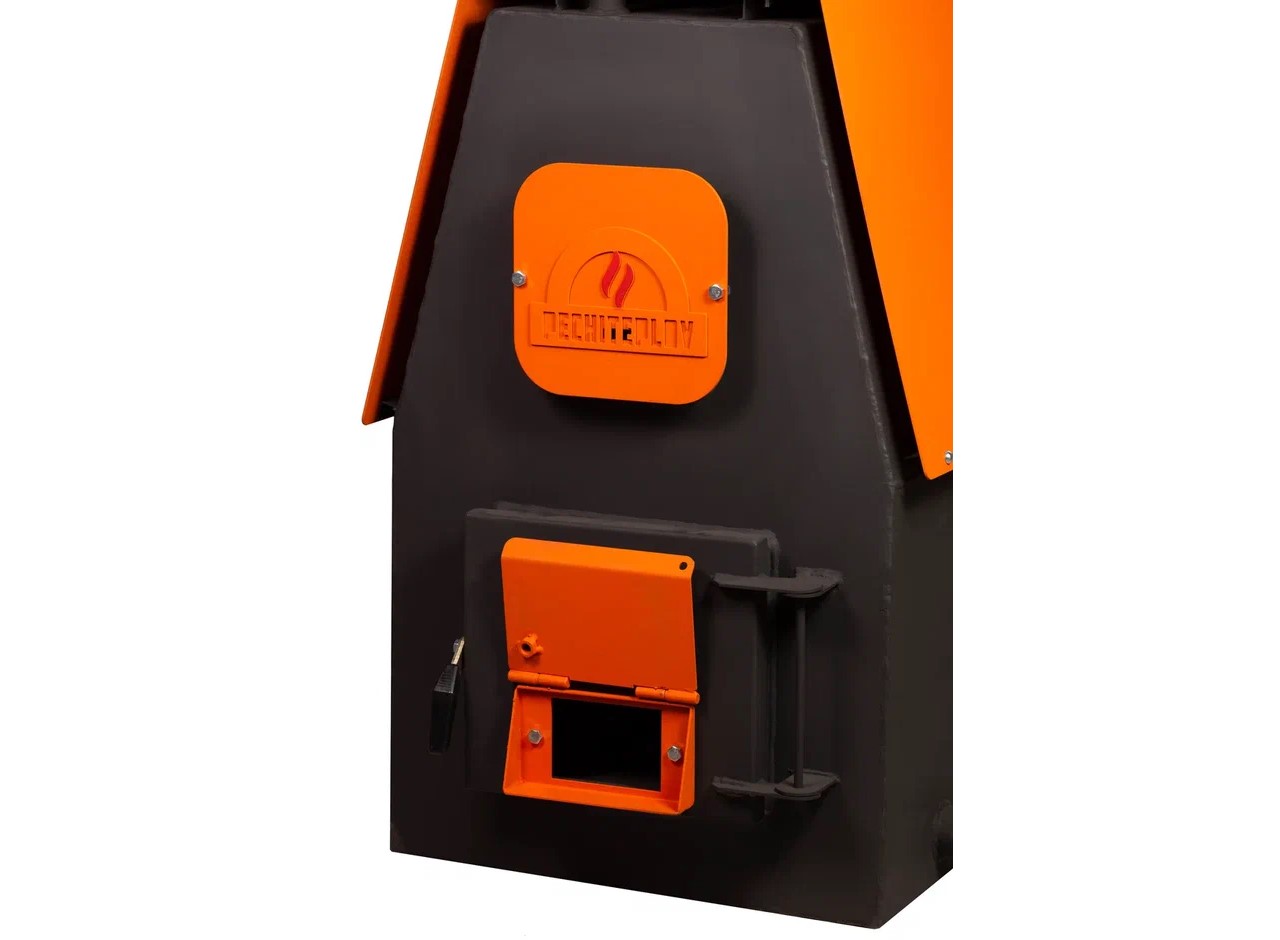 Котел PECHITEPLOV предназначен для работы в системах водяного отопления малоэтажных зданий при рабочем давлении до 2 атмосфер и максимальной температуре нагрева воды 95°С. Агрегат представляет собой цельносварную конструкцию из стали 09Г2С толщиной не менее 4 мм, с водонаполненными перевалочными листами.